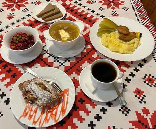 650 руб. Щи из печи на говяжьей косточке Плов с тыквой и курицей Салат греческий, но с нашей домашней брынзой) Клюквенный напиток + пряники